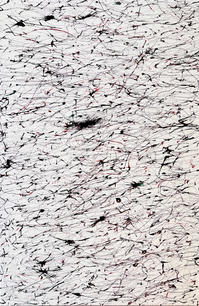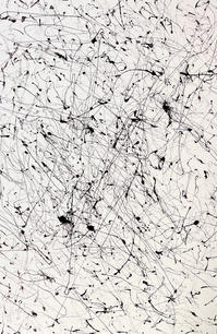 Inspired by the contemporary ballpoint-pen artists using the very distinct medium of Bic to create their (often figurative) work, this series challenges this particular art-style. Instead of using the ballpoint-pen to create figurative drawings, the ink is manipulated to create an “abstract expressionism” style work. A very rich and abstract pattern emerges using the 4 basic colours available in ballpoint-pens: Blue, Black, Red & Green. In monochrome or combined. The darker spots and swooshes resemble brushstrokes and capture the intensive and energy-demanding process required in this series.